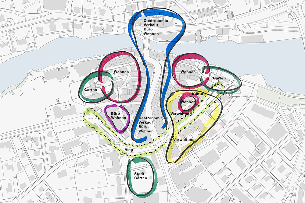 Plan mit den Leitnutzungen der Brugger Altstadt