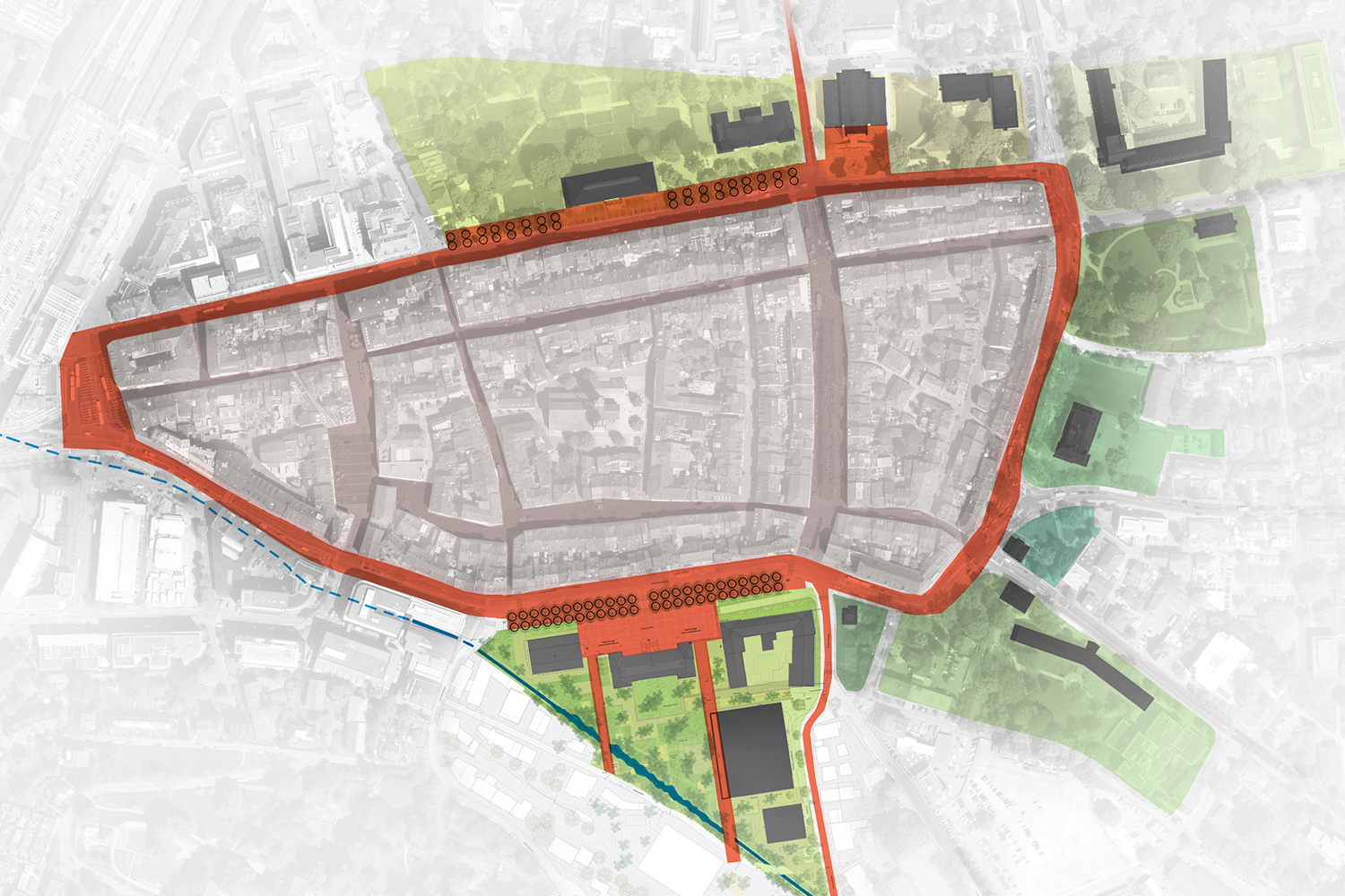 Einbettung: Campus T als Teil des Promenadenrings (Projekwettbewerb Etappe 1 | ARGE Graber Pulver Architekten AG)
