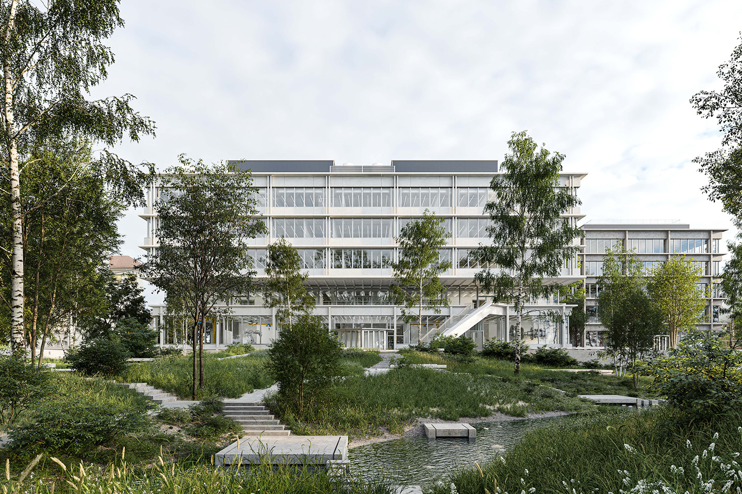 Visualisierung Campus Park mit Neubau Laborgebäude (Bauprojekt Etappe 1 | ARGE Graber Pulver Architekten AG)