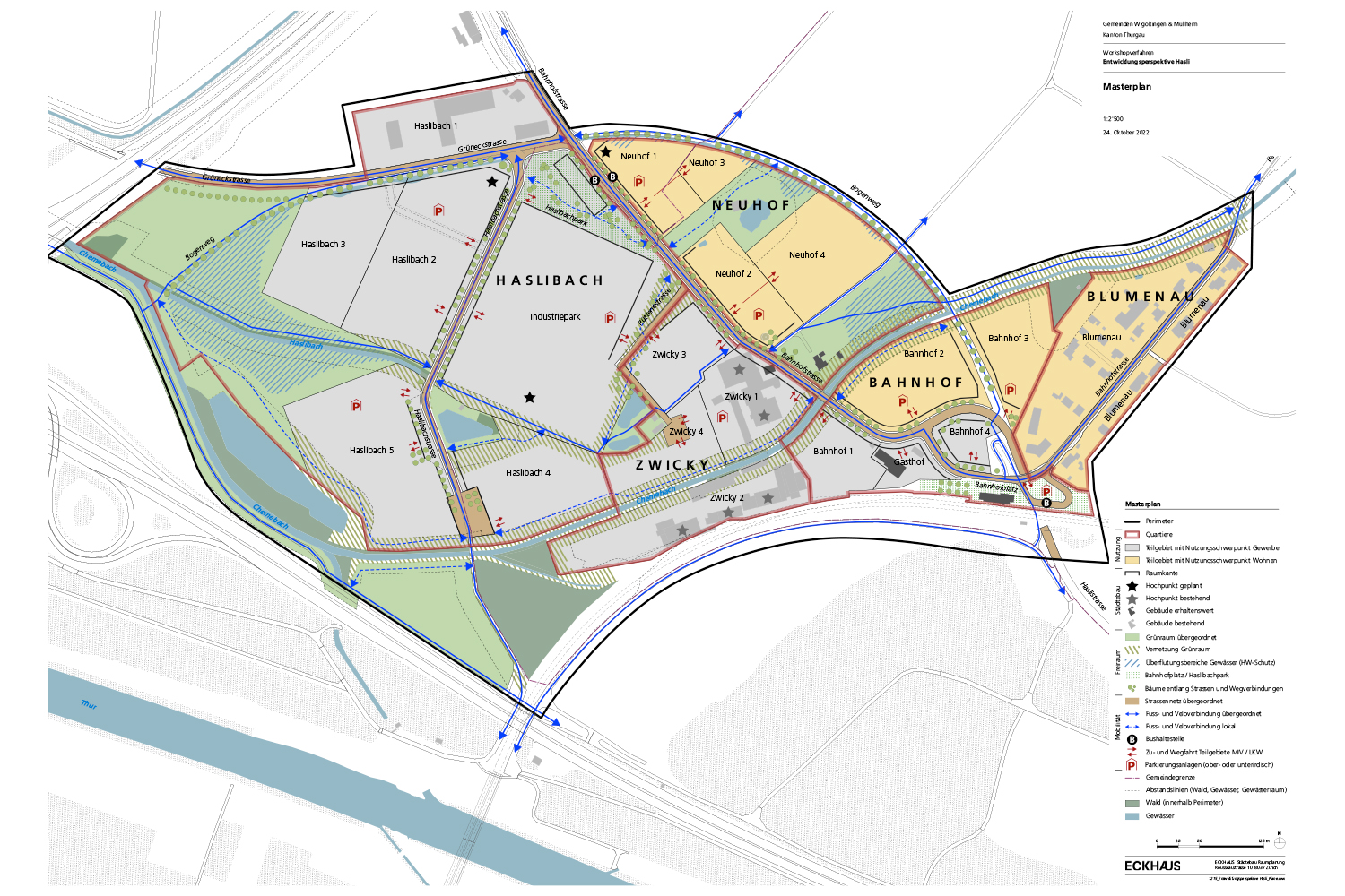 Im Rahmen eines Workshopverfahrens wurde eine Entwicklungsperspektive erarbeitet, welche den beiden Gemeinden Wigoltingen und Müllheim, den Grundeigentümer*innen und der Bevölkerung die künftigen gesamtheitlichen Entwicklungsmöglichkeiten des Ortsteils Hasli aufzeigt. Die Erkenntnisse wurden in einem Masterplan festgehalten. Wichtige Bestandteile des Masterplans sind das städtebauliche Zielbild mit mehreren Entwicklungszuständen sowie eine umfassende Umsetzungsstrategie.