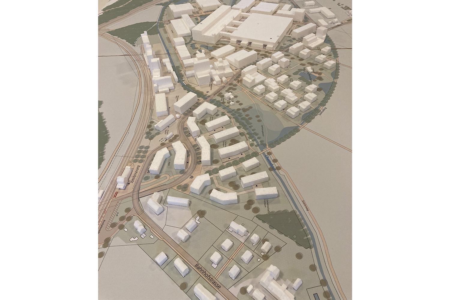 Arbeitsmodell: Blick zum Industriepark und entlang Bahnhofstrasse