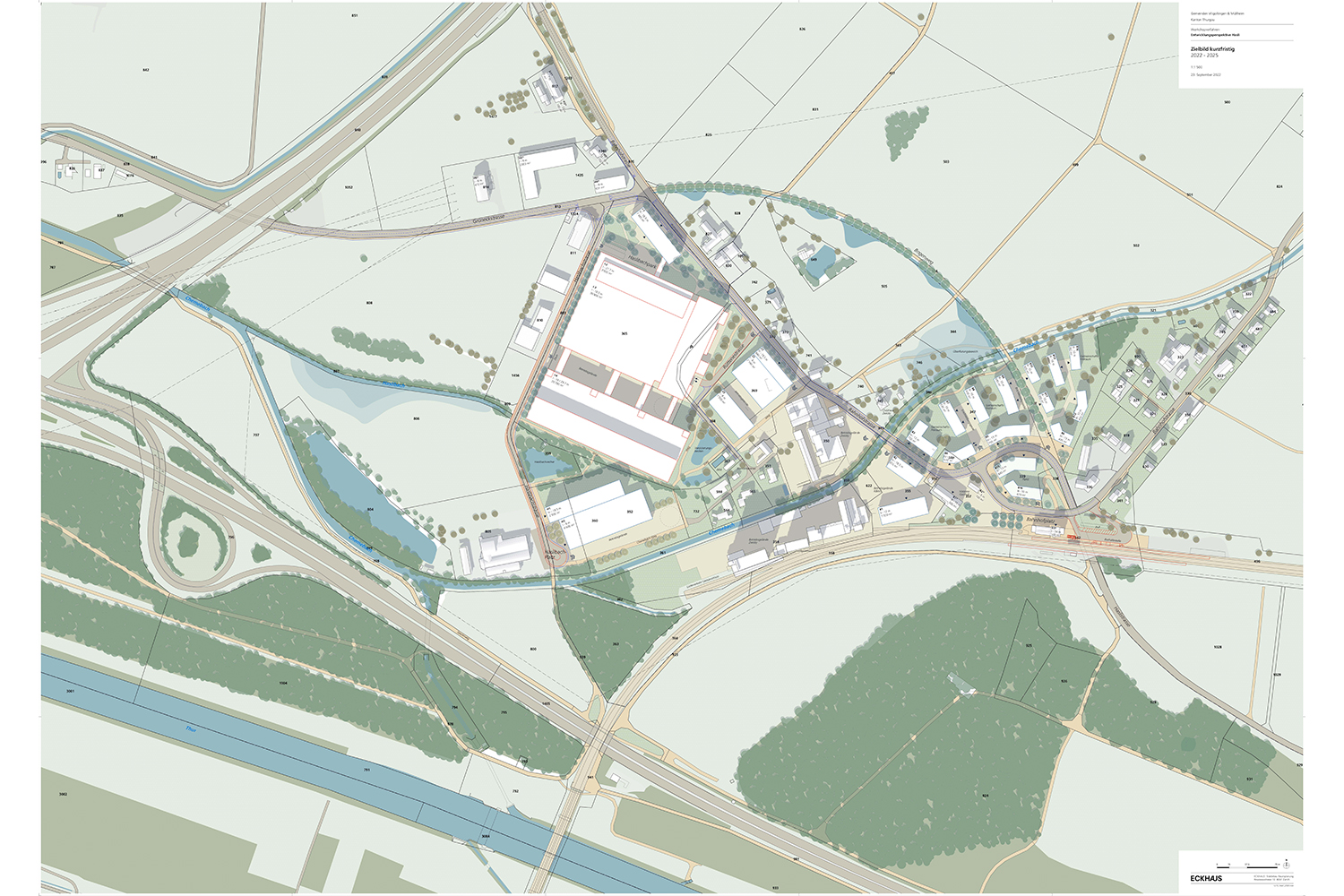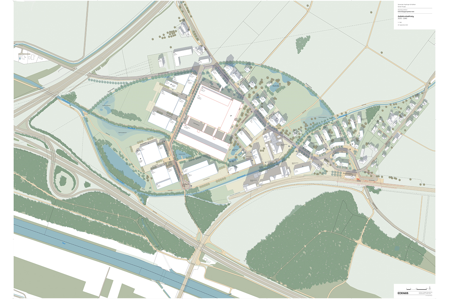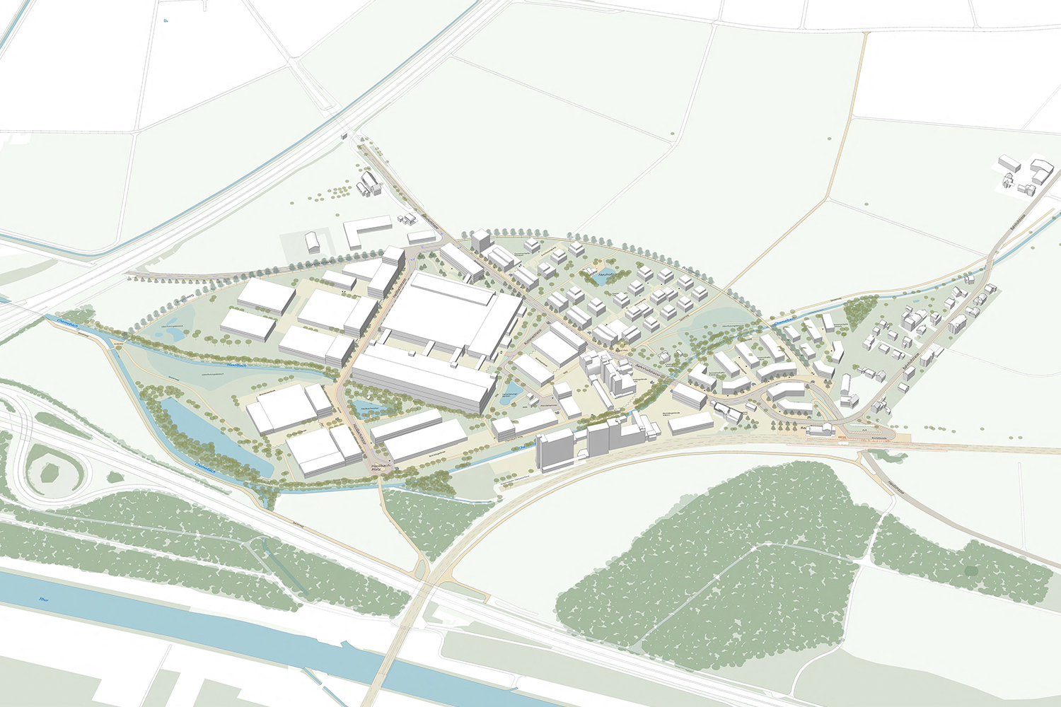 Die geplante Ansiedlung eines Industrieparks mit rund 800 Arbeitsplätzen und die Entwicklung des KIBAG-Areals zum gemischten Wohn- und Arbeitsgebiet, geben als initiale Bausteine Anstösse für die zukünftige Entwicklung und stellen gleichzeitig auch Weichen für die künftigen räumlichen Strukturen. In die heute mehrheitlich unbebaute Landschaft werden neue grossformatige Nutzungseinheiten mit vielfältigen Anforderungen an die Infrastruktur, die Gebäudetypologien und die Freiräume eingeschrieben.