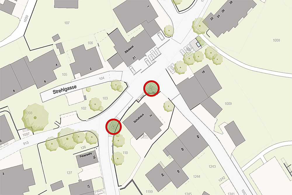 Neupflanzung Dorfbäume zur Markierung besonderer Orte