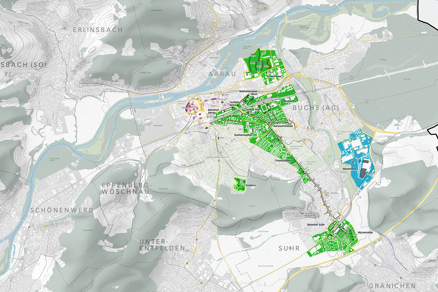 Verschiedene laufende Ortsplanungen im Perimeter von Aarau Regio setzten sich mit der Bauform «Hochhaus» auseinander. Dieser Gebäudetyp verändert das Stadt- und Landschaftsbild. Zudem haben Hochhäuser grenzüberschreitende Auswirkungen: Landschaftsbild, Verkehr, Veränderungen im funktionalen und sozialen Gefüge usw. Die überörtliche Koordination der Hochhausentwicklung ist folglich notwendig und wichtig. Aus diesen Gründen hat sich der Gemeindeverband Aarau Regio dazu entschlossen, ein Hochhauskonzept zu erarbeiten.