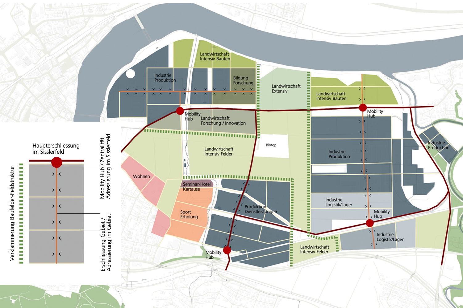 Der kantonal bedeutsame Entwicklungsschwerpunkt (ESP) Sisslerfeld liegt im Fricktal in den aargauischen Gemeinden Stein, Sisseln, Eiken und Münchwilen am Rhein. Vorgesehen ist die Entwicklung des Gebiets für möglichst wertschöpfungsintensive Betriebe. Um verschiedene Entwicklungsmöglichkeiten aufzuzeigen und zu testen, wird eine Testplanung durchgeführt, die ein Zielbild für den Zeithorizont 2040+ aufzeigen soll. Vier interdisziplinär zusammengesetzte Teams erarbeiteten begleitet durch ein umfassendes Gremium und strukturiert durch 4 Veranstaltungen jeweils einen Beitrag. «Das Team zeigt mit seiner interdisziplinären Zusammenarbeit beispielhaft und sehr gut, wie das federführende Thema Freiraum durchaus allseitig besetzt und integral zu einer sehr eindrücklichen Gesamtlösung führt» (Auszug Würdigung Teambeitrag).
